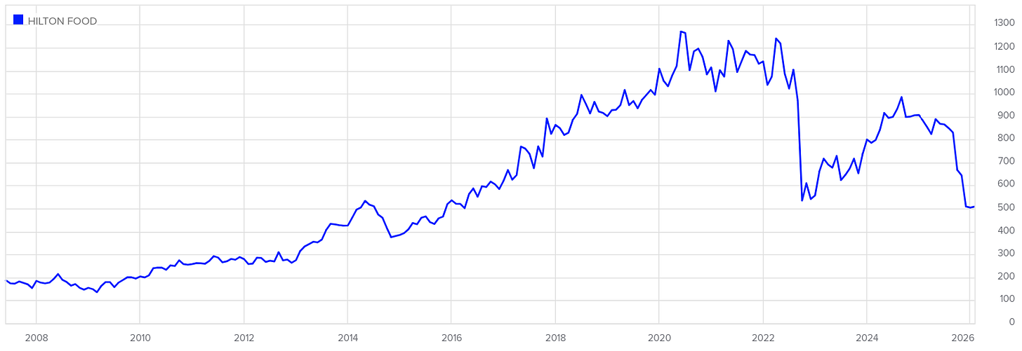 Hilton Food Group processes, packages and distributes food - primarily meat and fish - to retailers globally. The company was founded in 1994 in Huntingdon, UK, where it still has its head office today, and listed on the London Stock Exchange in 2007.